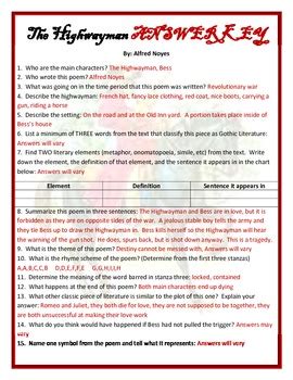 Download online HIGHWAYMAN POEM AND QUESTIONS PDF Gutenberg